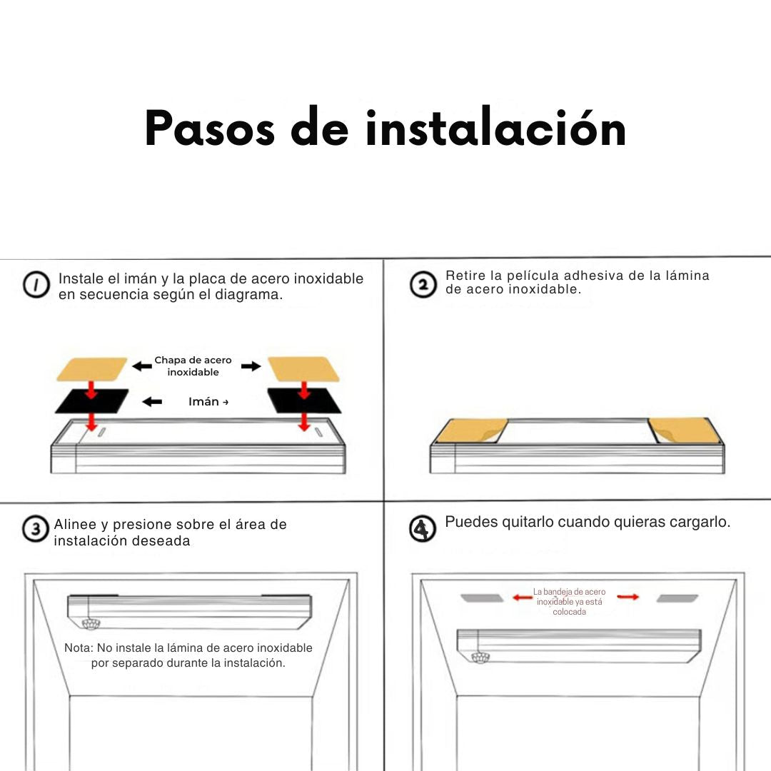 2️⃣ Pega la placa metálica adhesiva incluida.